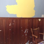 - Removing linoleum lining the walls wasn’t easy.