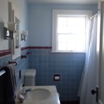 - Upstairs bath before. Blue with mold on the ceiling
